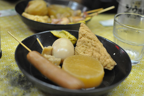 おでんは1個百円、4個たのむと1個おまけしてくれます。…おいしいよ!